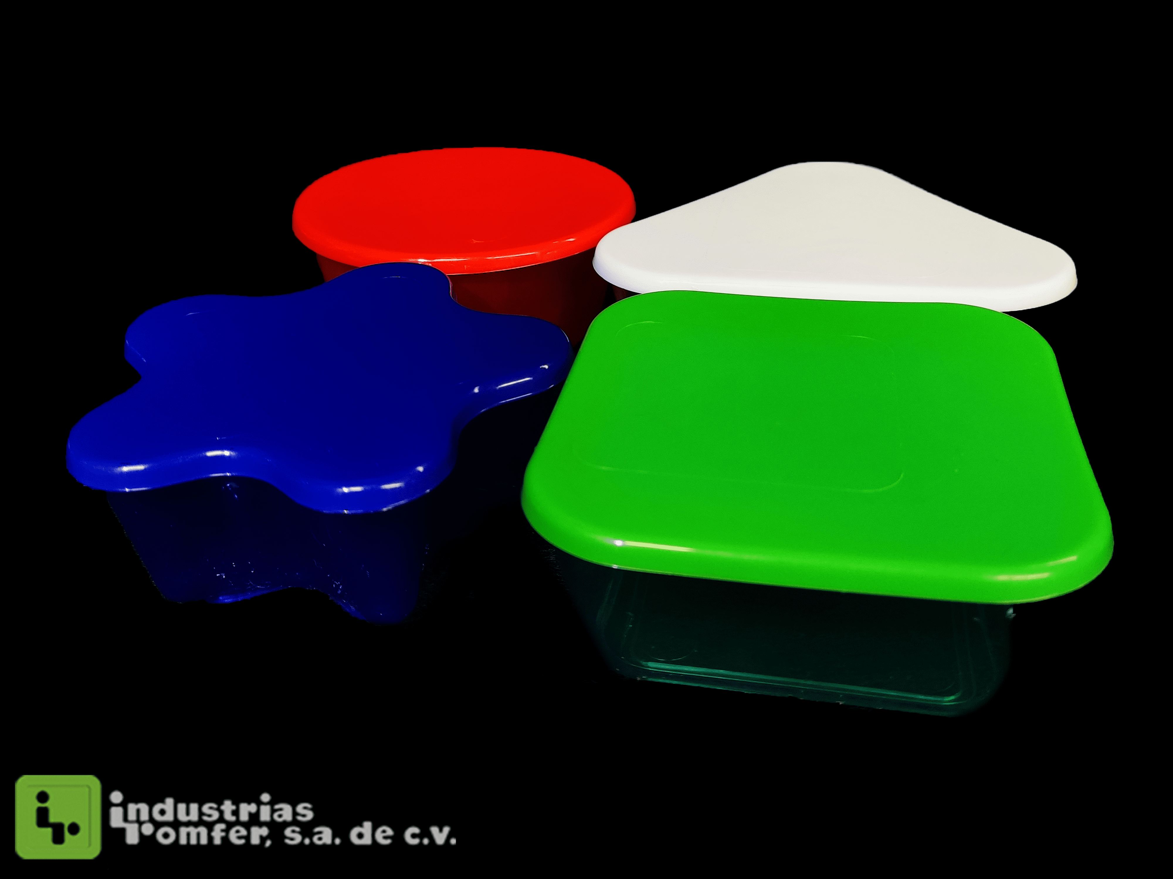 estos productos fueron construidos desde un diseño de piezas en 3D, un maquinado de molde, preparación de materiales, hasta llegar a una producción en serie.